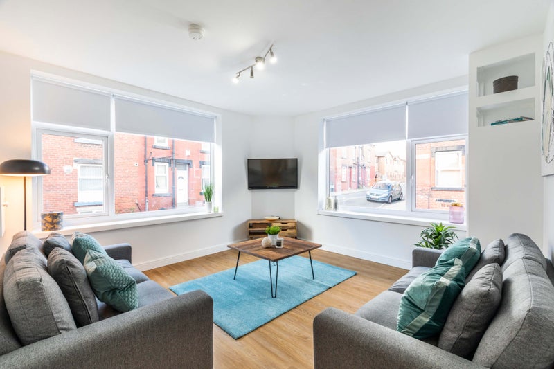 The house is in Burley. Its a 15 min walk from uni of Leeds. All the rooms are double and en suite. Shared living room and kitchen.