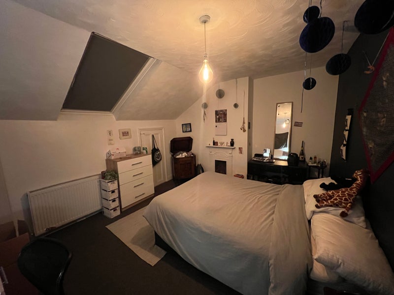 Moving to a different city so looking for someone to take over my lovely attic room! Super bright and cosy. Built in wardrobe and storage room! My housemates are so lovely and very easy going. They’re both musicians.