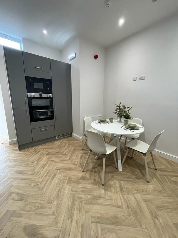 The communal areas of the property offer a good sized, full equipped kitchen including; dishwasher, full sized fridge freezer, microwave, kettle and has a separate utility room with a washing machine and tumble dryer with space to hang your clothes. This house also has a lovely patioed garden to the rear.