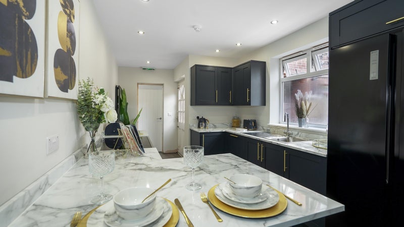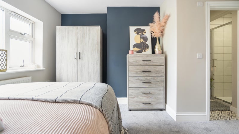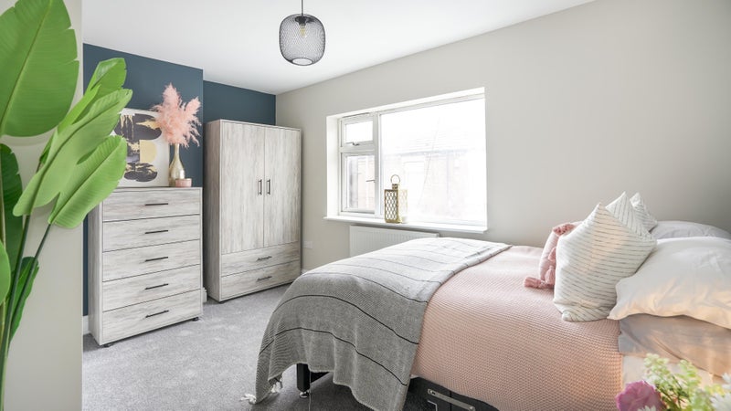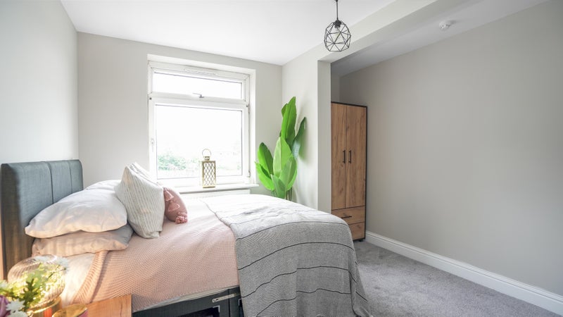 A spacious double room with en-suite available in a 5 bed house share. The room comprises of a wardrobe, chest of drawers, bed-side table, double bed and en-suite with a double shower head! The communal area offers a comfortable living space with 2 settees and a smart TV, a large kitchen with fridge/freezer, washer dryer and other electrical appliances. The house also has a large garden to the rear.