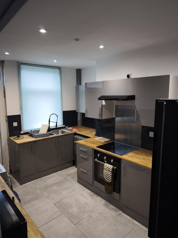 The house enjoys a large shared fully equipped kitchen with washing machine and dryer, breakfast bar & garden.