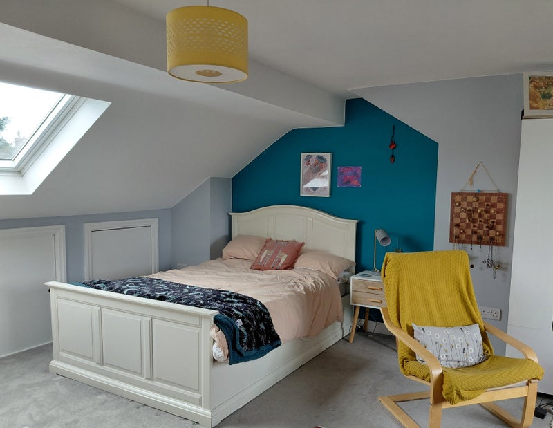 The current attic lodger is moving out mid March (photos of the sitting and desk area include her belongings).