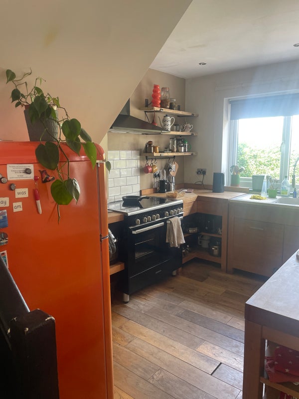 The house is mainly downstairs open plan and the tenant will have space for their own food, including separate fridge ( in the room ) with your own personal kettle, to add to privacy. There is enough space to hide away or be part of the ( quiet) action .
