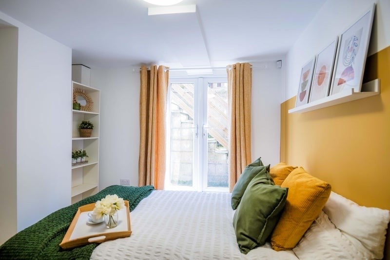 Located in the recently refurbished basement, at the back of the house you’ll have double patio doors for optional access and good daylight, double bed, desk, integrated wardrobe, black-out curtains and overall nice modern feel. It has a bathroom next door and only shared by one other.