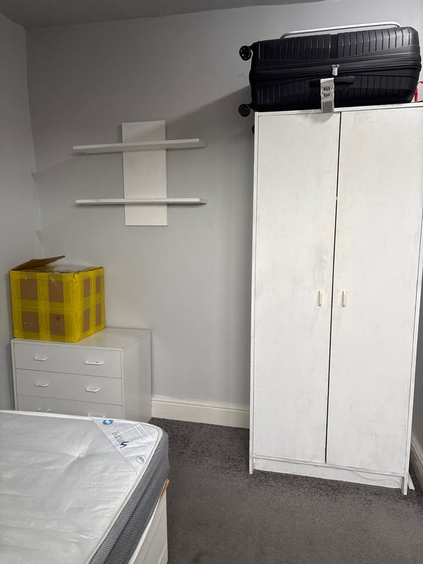 Double attic room in a 5 bedroom house. With a double cupboard and side table and study desk.