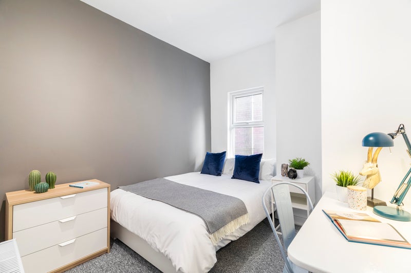 • 6 large double bedrooms, fully furnished with everything you need: double bed, wardrobe, chest of drawers, bedside table, full-length mirror, desk, and chair - ideal for both study and relaxation.