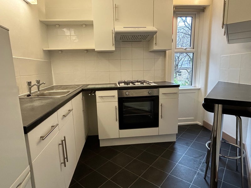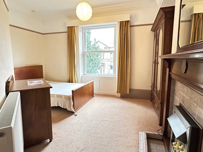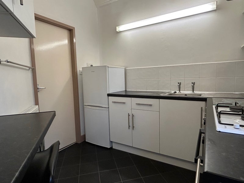 The apartment briefly comprises: The sitting room has a modern leather settee and a coffee table; there is a gas fire, CH radiator and south facing sash window. The bedroom has an oak effect bedroom suite, electric fire, CH radiator and a sash window. The kitchen has white appliances: gas hob, electric oven, extractor and fridge-freezer. There are a good range of base and wall units and plenty of worktop space; there is a CH radiator and window. The shower room has a white suite with electric shower as well as a towel radiator and small window. The apartment also benefits from double glazing, back-ground central heating and water included in the rent.