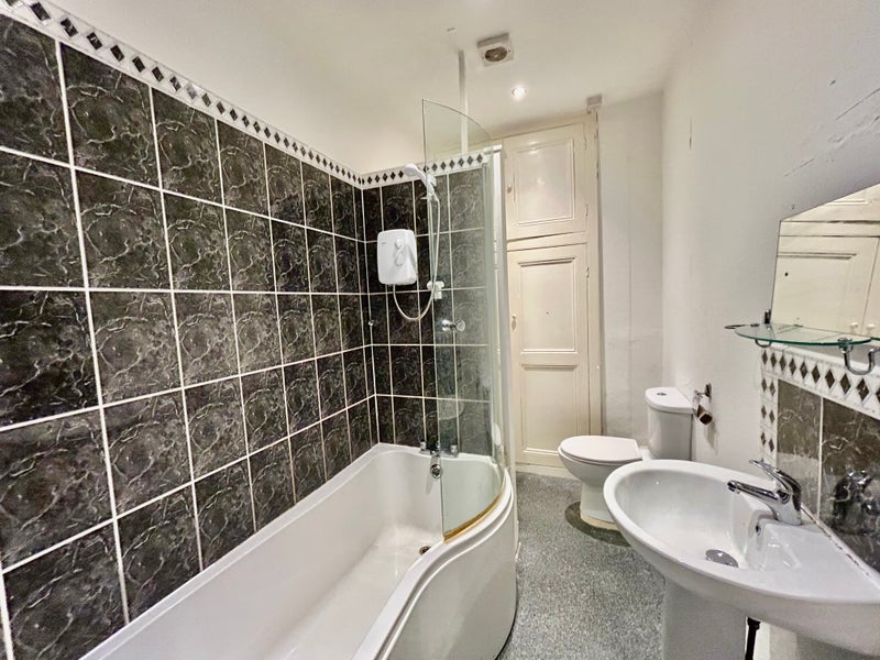 There is a bathroom which is shared with 2 other tenants in the house. The bathroom features a three piece white suite with overhead electric shower.