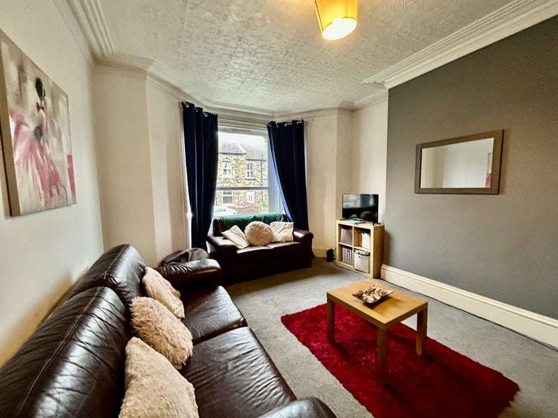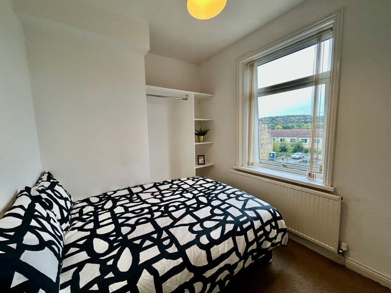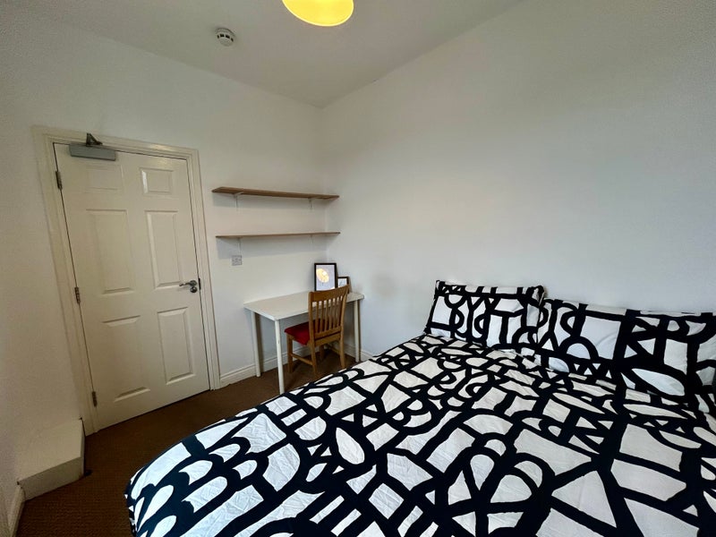 A bright and comfortable double bedroom room located to the first floor in this smartly presented and refurbished house. The room features a double bed with mattress, desk and chair along with built in shelves and hanging rail.