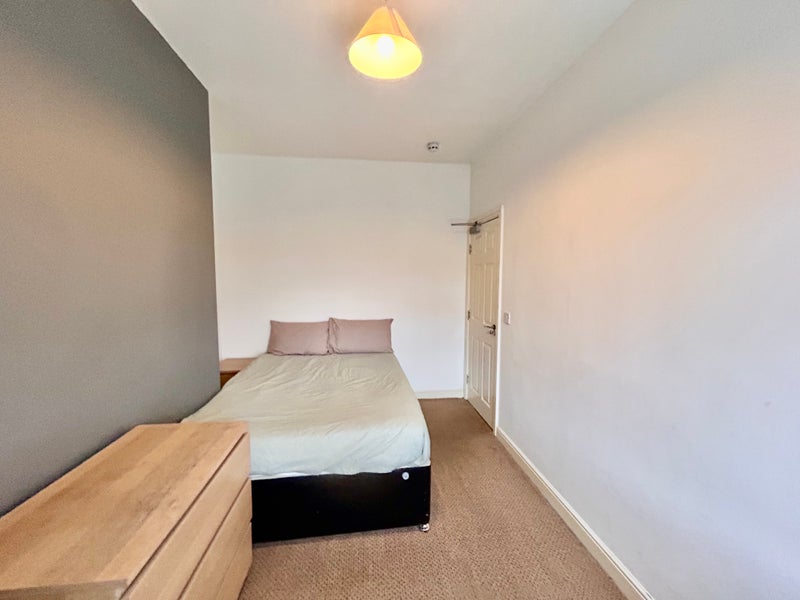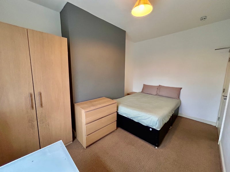 A bright and comfortable double bedroom located to the first floor in this smartly presented and refurbished house. Each room features a double bed with mattress, bedside table, wardrobe, chest of drawers, study desk and chair.