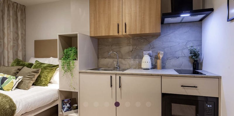 Luxurious student accommodation. Choose our Silver Studio option at HD1 if you’re after your own boutique apartment furnished with your own snug bed, private en-suite bathroom, desk and study space, tons of storage space and your very own modern kitchen area. You can invite your friends over and cook up some delicious meals and after, head downstairs to the games room to get involved in a game of shuffleboard or pool. These room styles vary by floor depending on which block you’re in, with the higher floors offering great views from Manchester Road. If you want to explore Huddersfield, we’re only a short distance from the town centre so you’ll never be short of things to do. Does this sound like your ideal living space? Get in touch with us today.