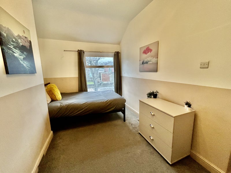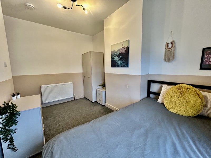 A fantastic double bedroom located on the first floor within this modern house. The room itself features a double bed with mattress, wardrobe, chest of drawers and bedside table.