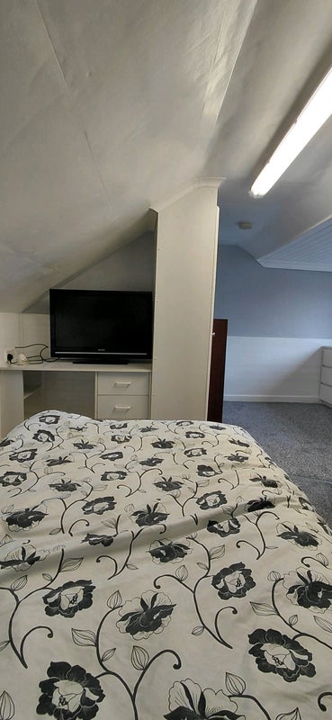 The room is appox 144sq ft ample wardrobe and drawers, centrally heated, double glazed, with 32in tv