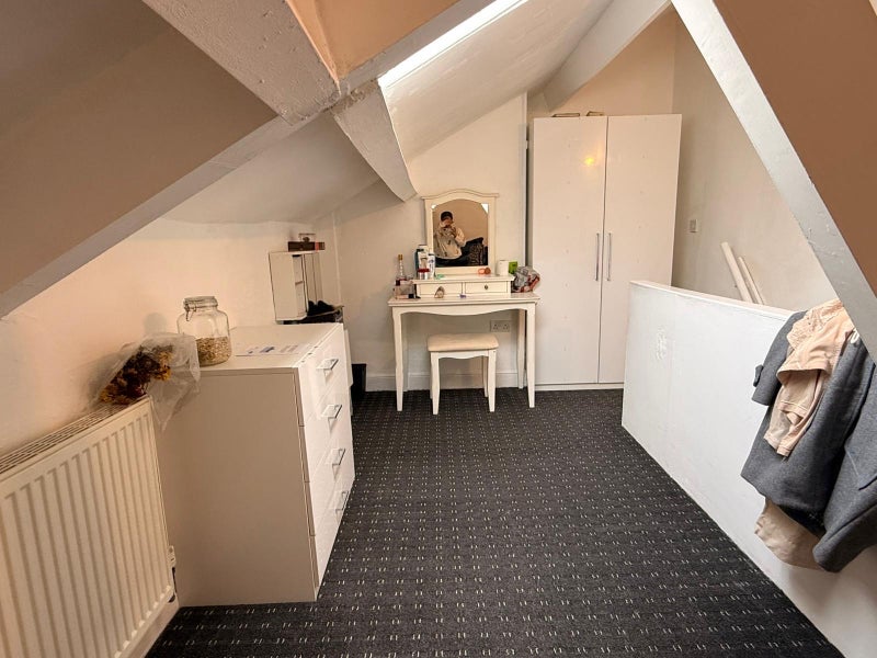 Spacious attic bedroom available in a 2 bedroom house in Huddersfield. Bedroom comes fully furnished, it also includes makeup table and a full length wall-mounted mirror. Bills are included (gas, electric, wifi and water). Shared kitchen and bathroom. Big garden. Less than 10 mins from town centre. 1 min away from a cash and carry.