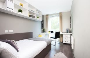 A modern and spacious en-suite room in a very central town location. A three minute walk to Huddersfield university and a 5 minute walk into the town center. The student accommodation is surrounded by shops, a gym, takeaways, pubs and bars.