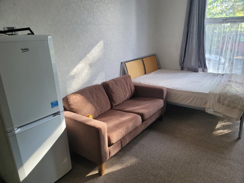 I have a beautiful newly renovated studio flat and it's got a small kitchen with washing machine microwave kettle toaster and electric cooker the room has a double glass wordrobe double bed a two seater leather sofa a 32 inch smart tv fridge freezer it's all ready for someone to move in I am only looking for a quite decent person there is a big kitchen in the house which is shared if you want to use that as well there is wifi and all bills are included