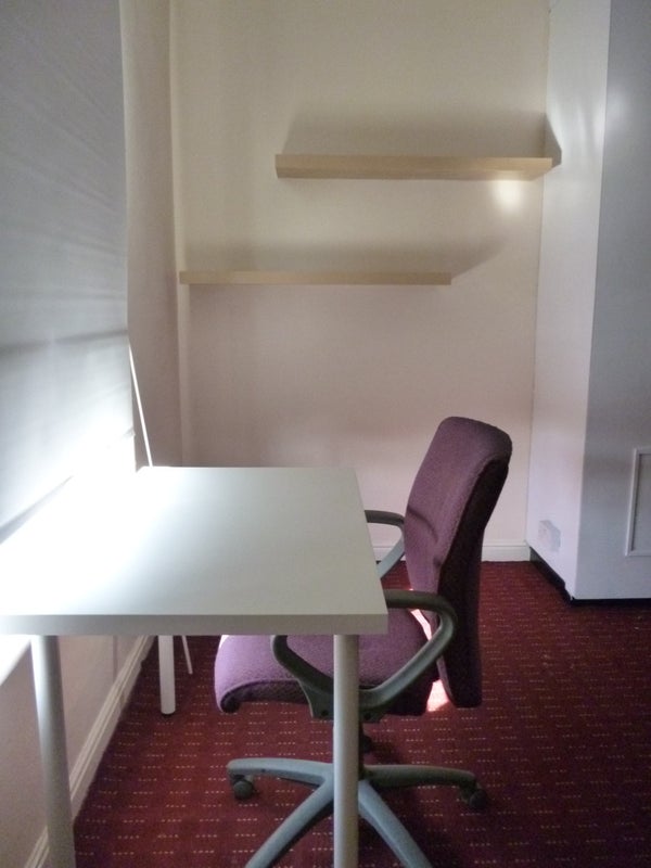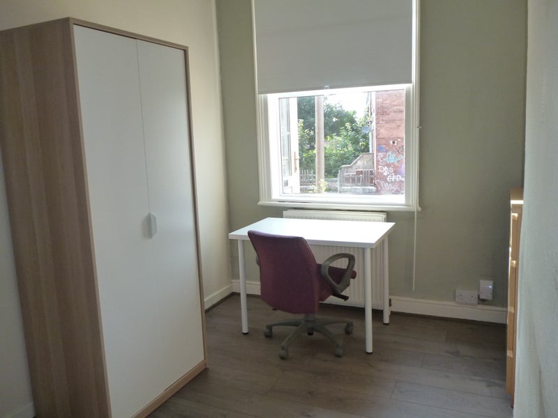 The room is fully furnished with a double bed, wardrobe, chest of drawers, desk and chair – ideal for studying and relaxing. It’s for single occupancy only.