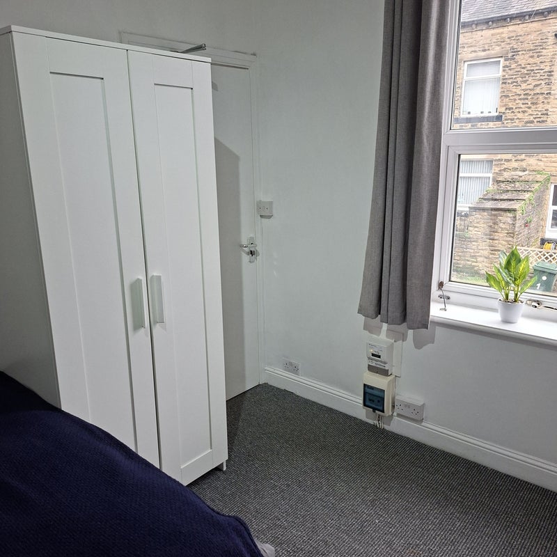 We have a small recently refurbished self contained single studio room with en-suite in a shared house for rent in a nice quite area of town with on street parking. Keighley Town Centre is a 10 minute walk and the Railway Station is about 15 minutes walk away. There are shops near by and regular bus service into town. The room rent of £110 per week includes Heating, Hot Water, Council Tax complementary Broadband. You only pay for any Electricity you use in the room. The room has its own Shower toilet en-suite along with a Mini Kitchen, Cooker, fridge and is suitable for a single working person. There is a common area which contains a house washing machine. The room is furnished with a double bed supplied along with a wardrobe. There is ample on street parking. The tenancy is for 6 months and all that is required is 2 weeks rent in advance (£210) plus a £200 secured Bond. References will be required along with proof of income. Shorter terms may be considered .