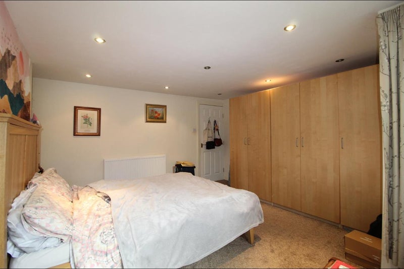 Downstairs, the large bedroom and modern bathroom are accompanied by a large storage area.