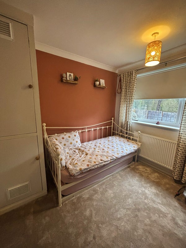 Lovely newly refurbished single room available to rent in Leeds on a short term basis. The room is in a lovely 3 bed terrace house in Kirkstall, only a 5 min walk away from Kirkstall Forge train station. I work full time in the office so it’s rare I’m working from home. I also have a very friendly cat called Charlie.