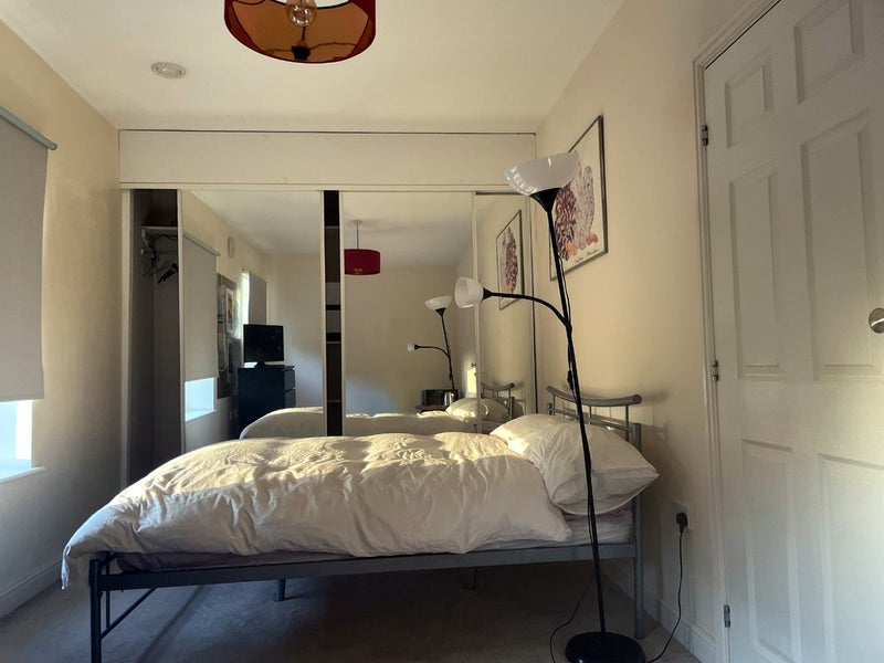 Fully furnished: double bed, chest of drawers, mirror wardrobe, bedside table