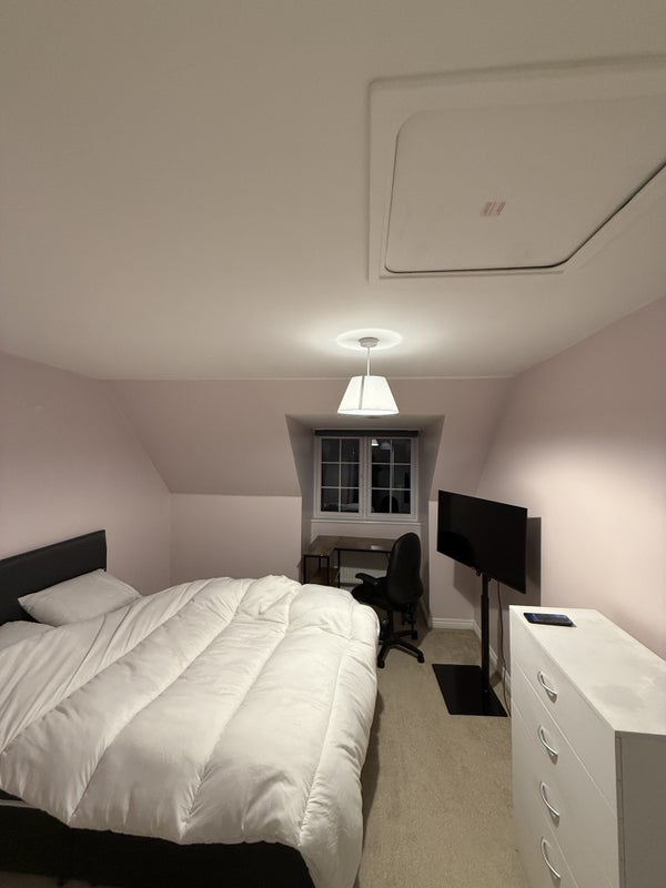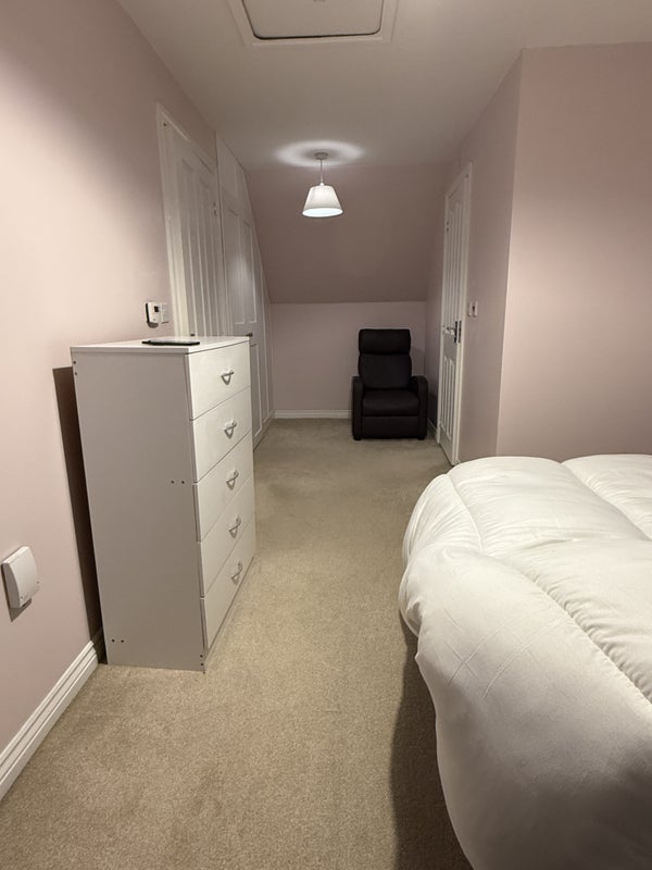 A spacious ensuite double room is available in a new build house located in a peaceful residential area just 10 minutes’ drive from Leeds City Centre. It is not a house in multiple occupation - common space is shared with only one person.