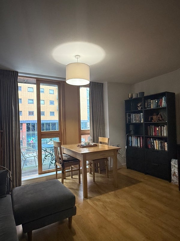 There is one double room available (for one person) in a 2-bedroom canal-facing apartment located in LS1, right next to the Leeds Train Station. Rent is £ 852, available now.