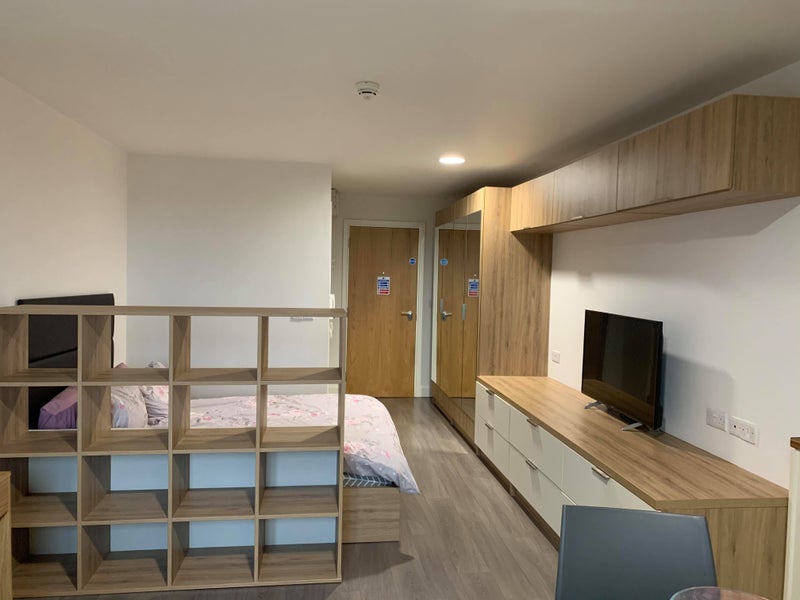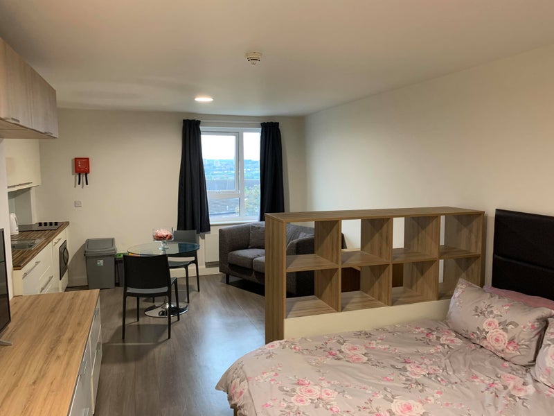 A self-contained furnished one bedroom studio apartment in Clarendon Quarter in Leeds City Centre (inc. bathroom and kitchen). Available ASAP. LS3 1FA, 10 minute walk to Leeds town centre.