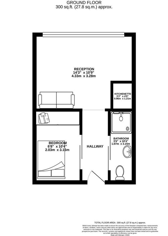 Occupying 28sq m this apartment contains a fully furnished living room with an open plan kitchenette. Sliding doors separate the bedroom and bathroom, while generous wardrobe space in the bedroom allows for excellent storage.