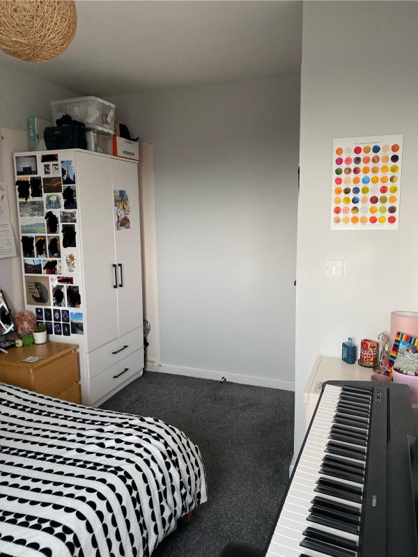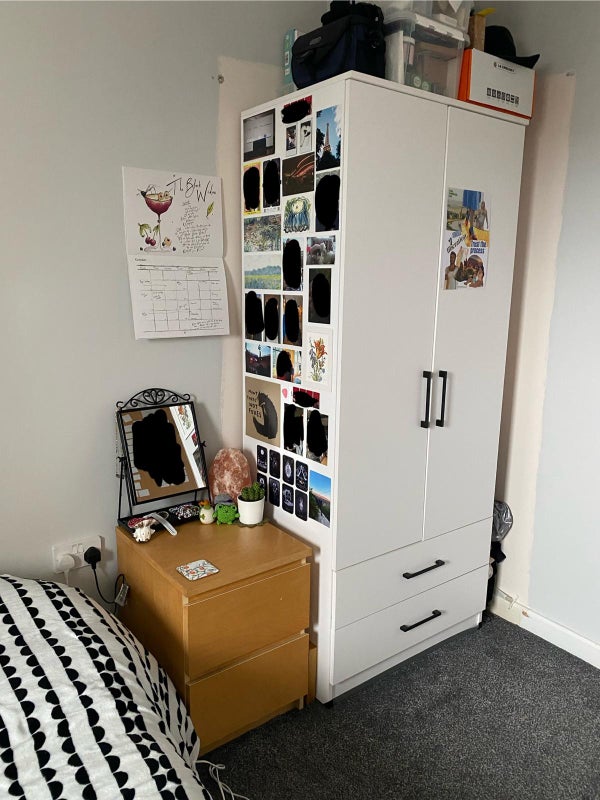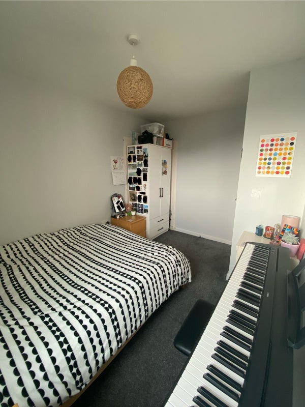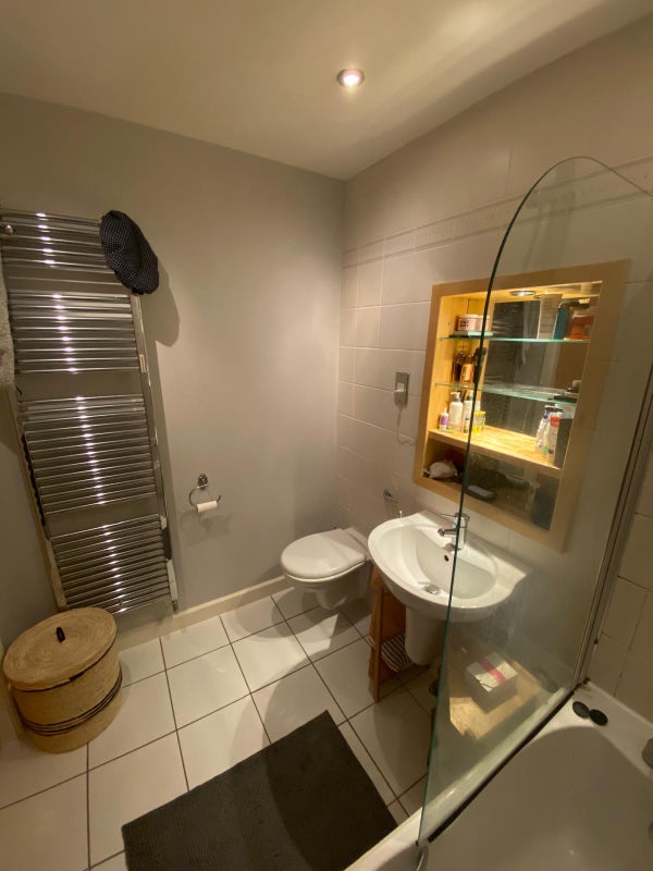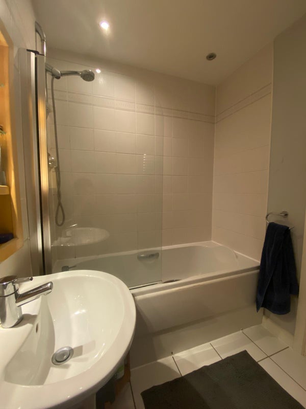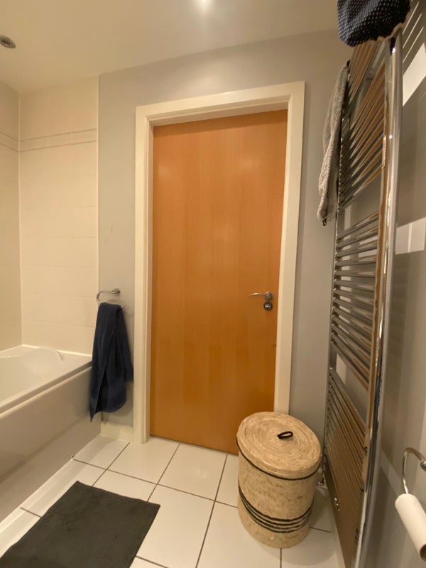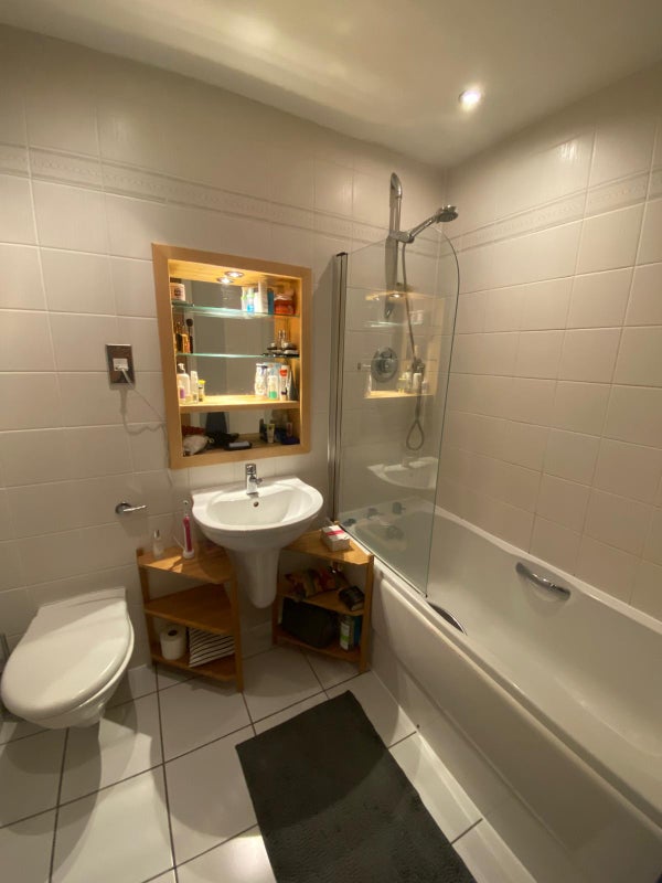 Furnished room with a double bed and own bathroom. Shared living room and kitchen. Extra storage space by the living room. There's a gym on site which can be used by tenants for a one off fee.