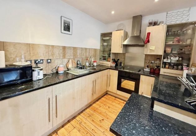 The fitted kitchen is well equipped with ample storage, integrated appliances and generous worktop space, making it practical for everyday living.