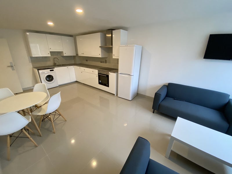 The living room has all amenities purchased by my friend and I included, including an additional dryer, microvwave, kettle and vacuum