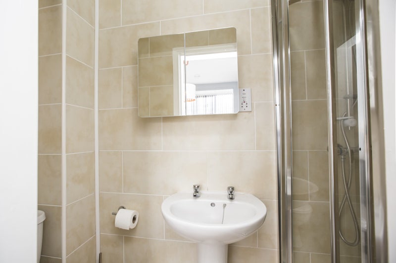 Room 1 offers a spacious ground floor living space complete with a built-in wardrobe, 3/4 bed, and en-suite shower room with a white suite and electric shower. All bills are included, from gas and electric to council tax and WiFi, ensuring a hassle-free living experience.