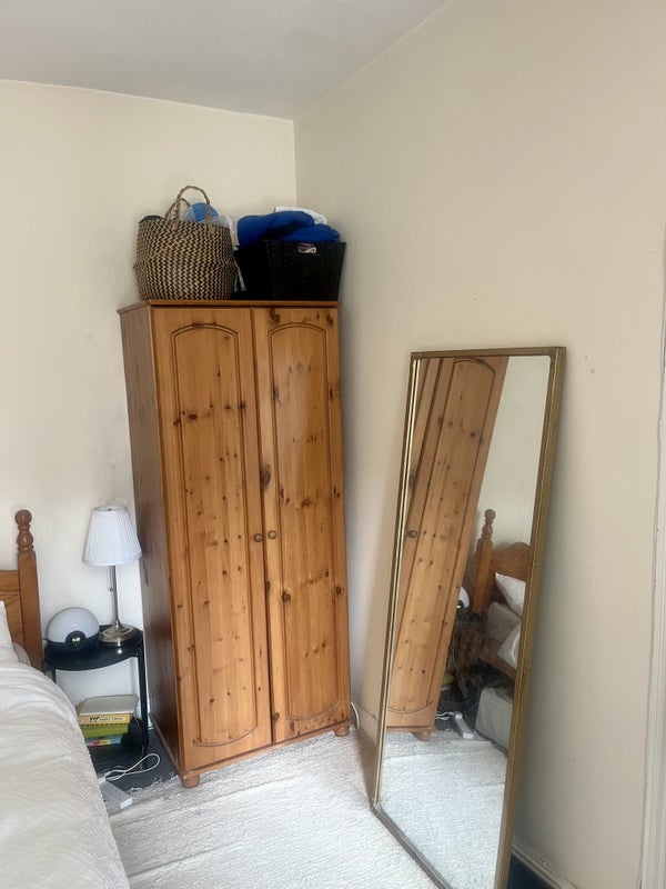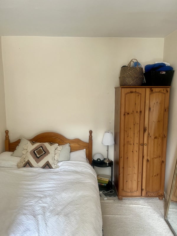 The room is on the first floor. It is a bright double room and comes with a chest of drawers, wardrobe and desk.