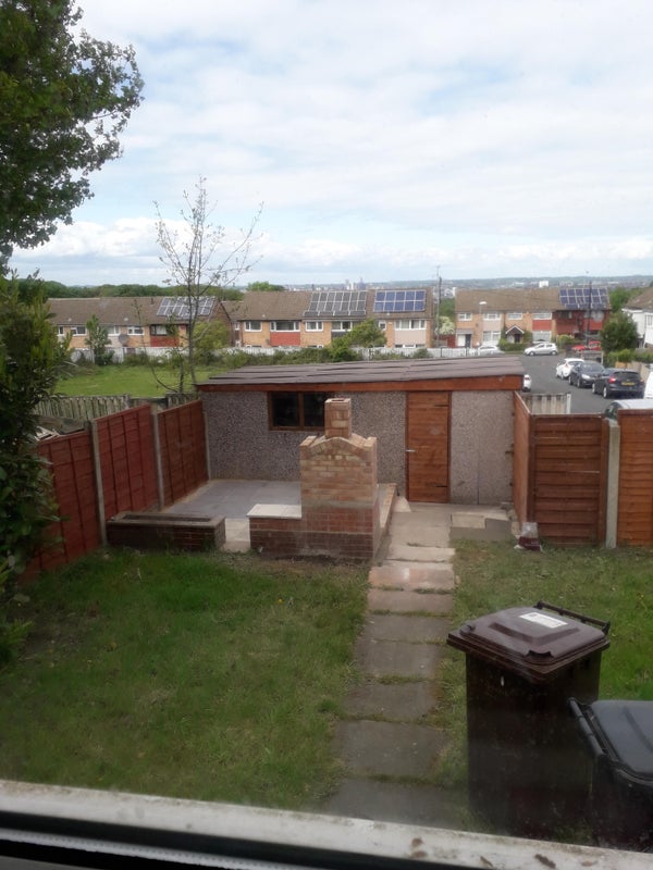 Outside a large back garden.
