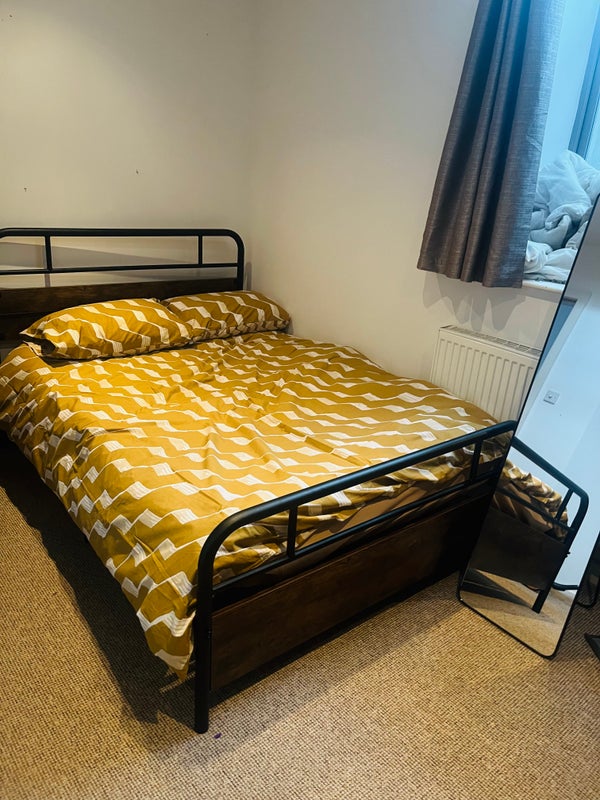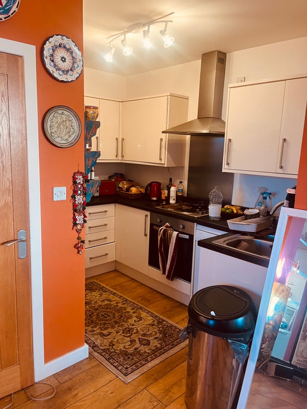 I live in a 2-story, 2-bed duplex as the only tenant. Everything has been ok’d with the landlord . The room is currently part way through being redecorated, but will be furnished with double bed , bedding, double clothes rail, drawers, standing mirror, lamp, rug. There is also a large understairs cupboard that can be used for extra storage.