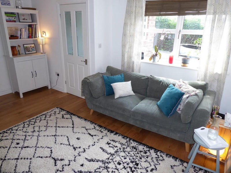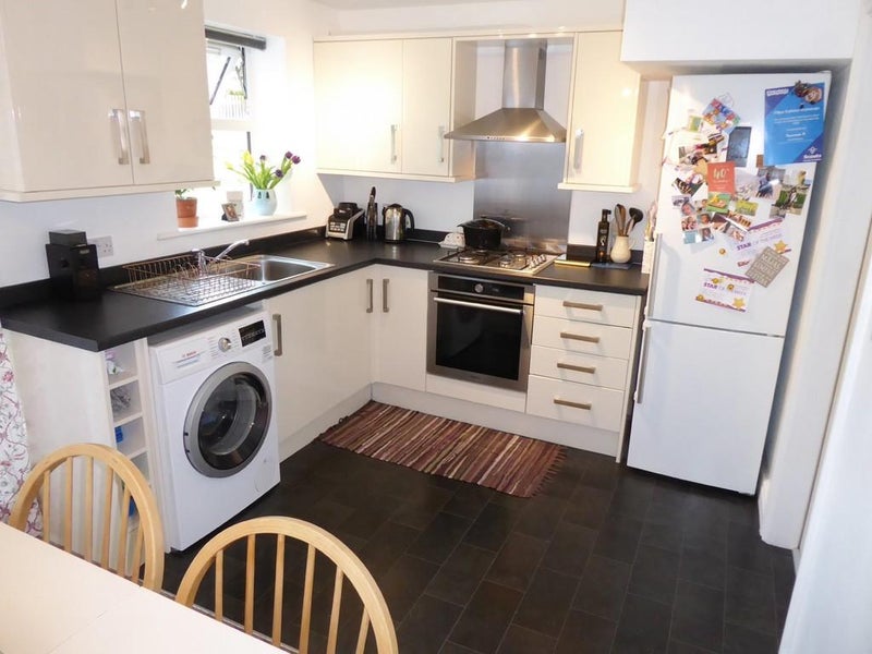 Our kitchen includes a modern oven, hob, microwave, kettle, and fridge-freezer, plus there is space for a dishwasher or washer. Plenty of space for home cooking and a dining area overlooking the garden, creating a light, sociable space to eat or work.