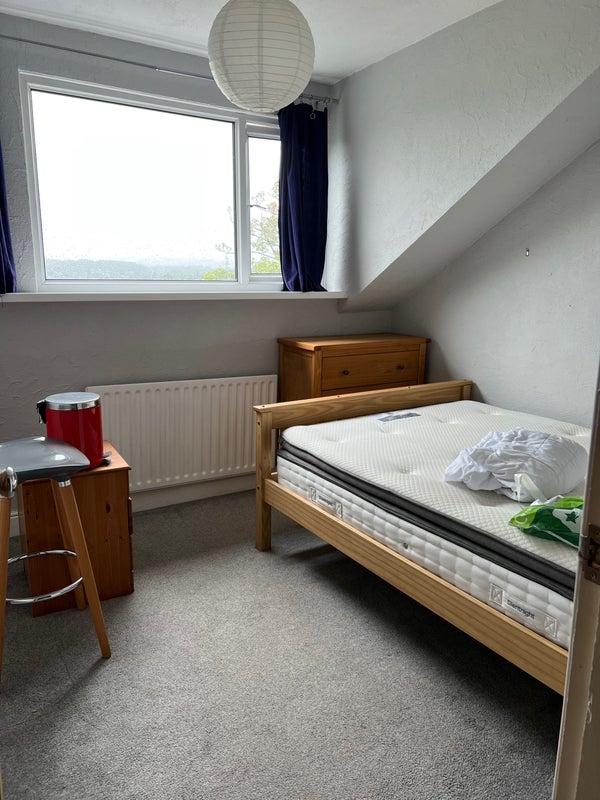 The room is on the top floor, it has just been newly decorated and is ready for you to move straight in. It has lovely big windows with fantastic views over the Rodley Nature Reserve and across Leeds. The room is small to medium sized but has a double bed with plenty of cupboard and drawer space (it’s bedroom 3 on floor plan), additional wardrobe for this room on the landing just outside the room
