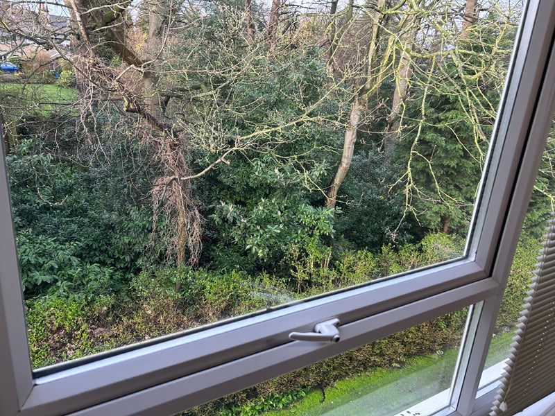 Spacious double room available in a modern flat just off Roundhay. Located in a Council Tax Band B property, the flat overlooks a forested area, offering a peaceful and scenic view.