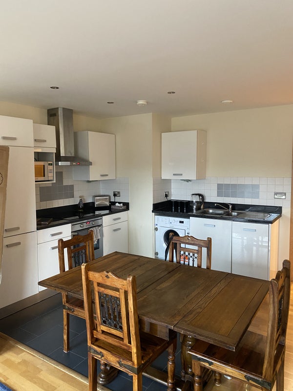 The room is furnished to a very high standard - hasn't as yet been lived in - all the furniture is new. There is a shared open plan living area and joint kitchen.