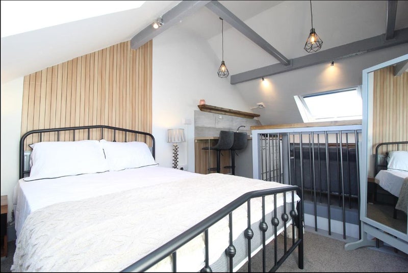 Finished to a very high standard, this second floor property is laid out in an open plan style. The living and kitchen area have been recently decorated and carpeted, with large Velux windows and a fully fitted kitchen. The bedroom has a new double bed and under-eaves wardrobe and additional storage. An ensuite shower room is accessed off the bedroom.