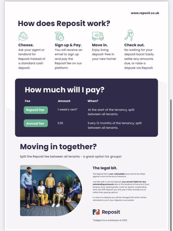 Zero Deposit Option via Reposit: