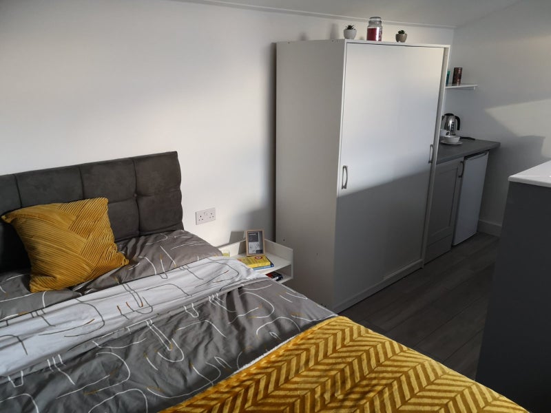 Important note: The only thing not allowed in the room is actual cooking (e. g. using a hob, oven, frying, etc.). Light food preparation, reheating, making sandwiches, using a kettle / microwave / toaster etc. is perfectly fine.