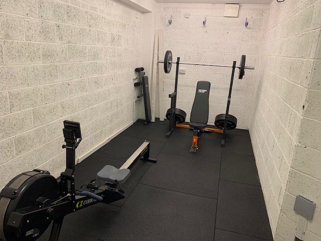 Gym in the property with Concept 2 rowing machine and weights for anyone who likes to keep fit.