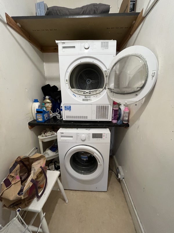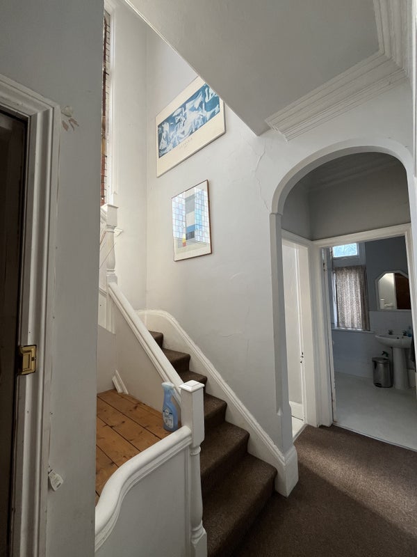 In spacious flat over 2 floors with 2 bathrooms plus sep toilet.