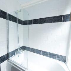 BATHROOM WITH BATH AND OVER SHOWER, BASIN & WC.
