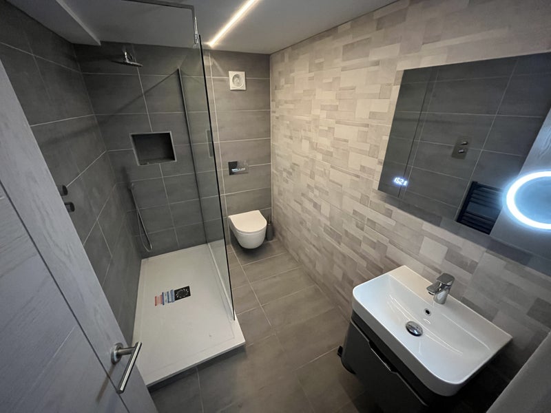 5* Hotel Style Bathroom with rainfall shower, heated towel rail, cabinet & backlit mirror