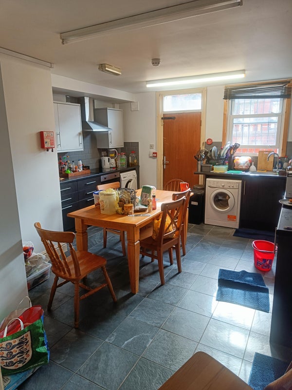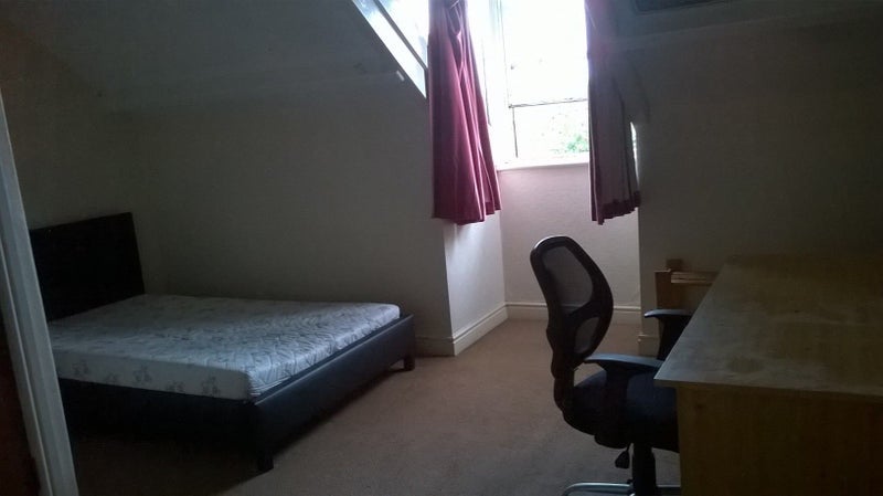 The room available is large with double bed, desk, chair, draws, wardrobe and shelves on the 2nd floor (so a quiet room). The house is a short walk to Leeds University and a few minutes walk from Hyde Park Corner. The rent is very reasonable at £335pcm (plus bills).