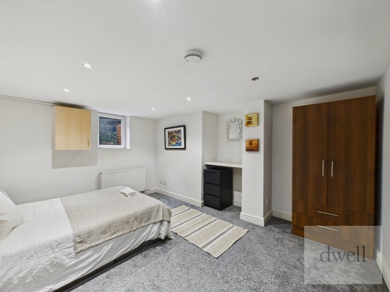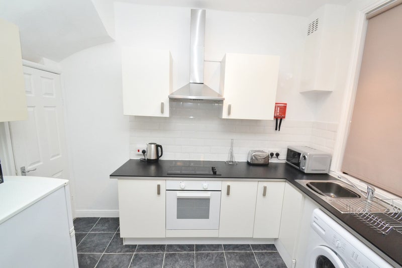 On the ground floor, tenants can enjoy a spacious lounge that features a large L shaped sofa and a 40” flat-screen LED TV. The modern kitchen flows seamlessly into the lounge creating an ideal setting for socialising. It comes fully equipped with all of the essentials such as a toaster, oven, electric stove, microwave, kettle and washing machine making it easy to feel right at home from day one. To the front of the property is a small, low-maintenance, paved garden with mature shrubs to the borders. On-street parking is available along Pinder Street with no permit required.