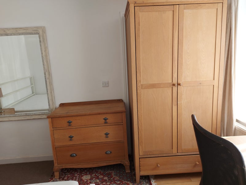 Downstairs double room and private area and downstairs bathroom annex following tasteful extension in lovely, comfortable, large and quiet, warm home. Kingsize bed. Private side entrance. Worth a view. Neat and tidy, safe location in walking distance of station, town and all amenities. . Can move smaller furnishings in or out to suit. Contact if you would like to view/discuss. I have a timid sweet little black cat. Thank you.